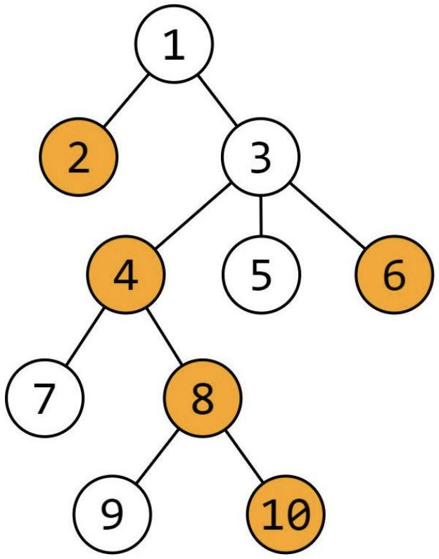 The $4$-subordinates of worker $4$ are $4$, $7$, $8$, $9$ and $10$. Workers $4$, $7$, $8$ and $10$ know the news, so the answer to the query this time is $4$.