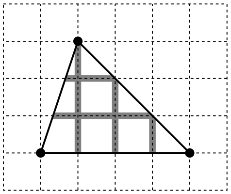 이러한 다각형이 주어지면, 다각형 내부에 격자 선분의 길이를 구하면 된다.