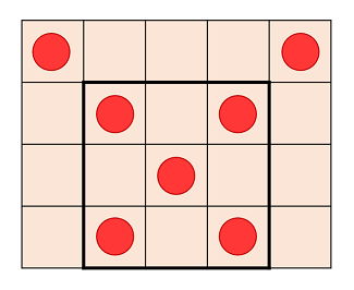 机の大きさといちごの位置についての情報が与えられたとき,取れるいちごの個数の最大値を求めるプログラムを作成せよ.
