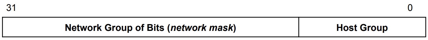 Internet Protocol (IP) V4 addresses are 32-bit integers that uniquely identify a host on the internet. IP addresses are written in a dotted-quad notation such as 192.168.1.100. Each component of the dotted-quad specifies an 8-bit (unsigned) value, corresponding to each of the 4 bytes in the 32-bit integer address. An IP address specifies two groups of bits in that 32-bit integer: the network group and the host group. The least significant bits in the address specify the specific host on the network described by the most significant bits.