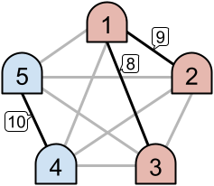 For example, as seen in the left image above, only the links with priorities $6$ and $5$ are active. This creates two disjoint intranets. However, in the example on the right, three links are active, which results in one intranet consisting of all $4$ machines.