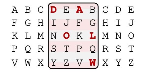 You may know the game Where is Waldo?. In this game you need to find a person named Waldo in a crowd of people. This problem is kind of similar. You need to find an axis-aligned rectangle of minimal area which contains the letters W, A, L, D and O and those letters are hidden in a crowd of other letters.