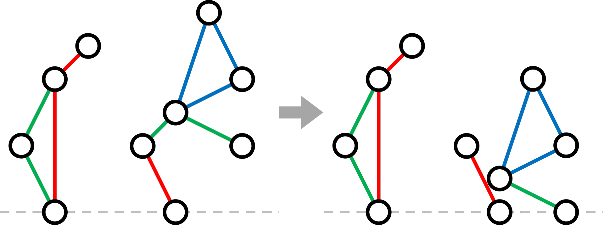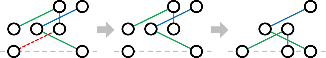 아래 그림은 Gravity Hackenbush에서 선을 하나 자른 뒤의 상태를 보여준다.