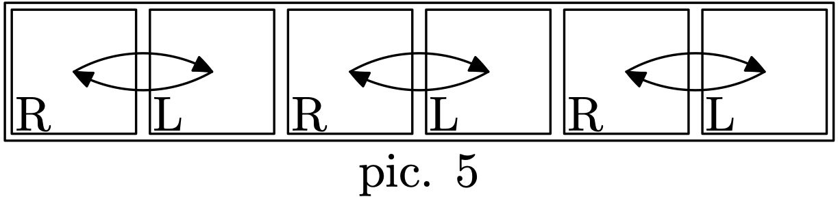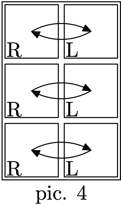 In the third example, three substrings "RL", two substrings "RLRL" and one substring "RLRLRL" can constitute an admissible map, some of them in multiple ways. E. g. here are two illustrations of substring "RLRLRL" as matrices of size $3 \times 2$ (pic. 4) and $1 \times 6$ (pic. 5).