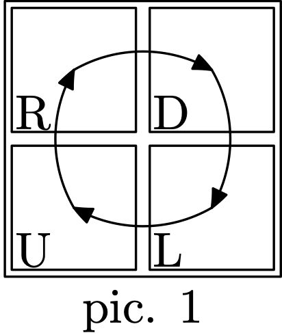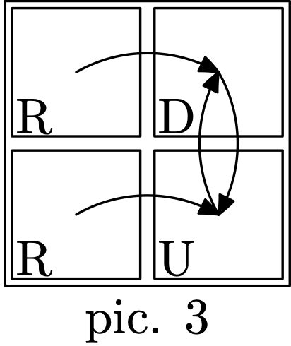In the second example, no substring can constitute a description of an admissible map. E. g. if we try to look at the string "RDRU" as a matrix of size $2 \times 2$, we can find out that the resulting graph is not a set of cycles (pic. 3).