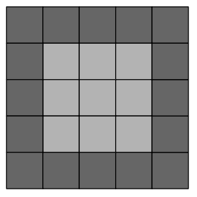 More specifically, the patio must have a square shape. Tiles of one of the colours are used as the border of the square. The border must be exactly one tile thick. The tiles of the other colour are used to fill the rest of the square. Also, the side of the square must consist of at least 3 tiles.