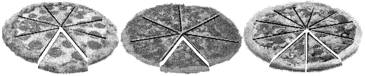 Roommate Robin points out that Rafael’s plan works fine on the first day, but different pizzas get consumed at different rates. So by always stacking leftover pizzas in the same order, it is possible for a heavier pizza to be stacked on top of a lighter one, risking a ruined pie. Continuing the previous example, on the 6th day, the following leftovers would need to be stacked: 2/8 Pepperoni, 1/7 Sausage, and 10/11 Veggie (having eaten 1 leftover slice and 1 fresh slice to get the required 2 slices). The Pepperoni leftovers are properly under the lighter Sausage, but the Veggie pie is on top, even though it’s now the heaviest! This puts the Sausage leftovers at risk.