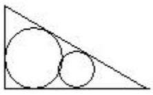 Most circle and triangle lovers would stop here, but Cameron is curious what happens if you inscribe a second circle in between the longer leg of the triangle, the hypotenuse and the previous circle (without circles overlapping each other):