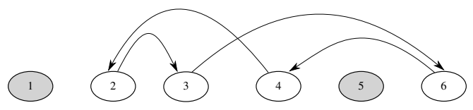 Mislav želi pronaći ciklus kojim skače na svaki slobodni lopoč točno jednom te koji završava na istom lopoču na kojemu je skakanje započelo. Dva ciklusa su jednaka, ako je redoslijed lopoča po kojima se skače isti bez obzira na to što ciklusi možda ne počinju s istom lopočom. Dakle, u primjeru na slici, cikluse 2–3–6–4–2 i 6–4–2–3–6 smatramo jednakima dok cikluse 2–3–6–4–2 i 2–4–6–3–2 smatramo različitima.