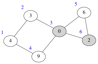 Slika 1: Ilustracija prvog primjera test podataka: trenutni utjecaj grada 3 je 22, a grada 6 je 8.