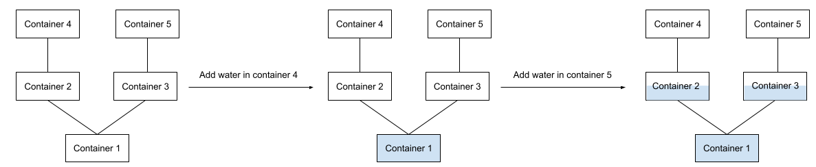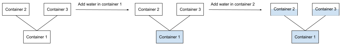 In step $1$, after adding $1$ liter of water in container $3$, the water flows downward because the water containers at the lower level are still empty.