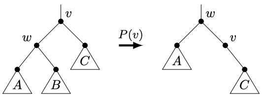 Jednak chłopiec szybko zauważył, że coś jest nie tak. Jeśli podczas lewej rotacji wierzchołek w miał jakieś lewe poddrzewo, to zostanie ono zgubione! To samo może stać się z ewentualnym prawym poddrzewem wierzchołka w podczas prawej rotacji.