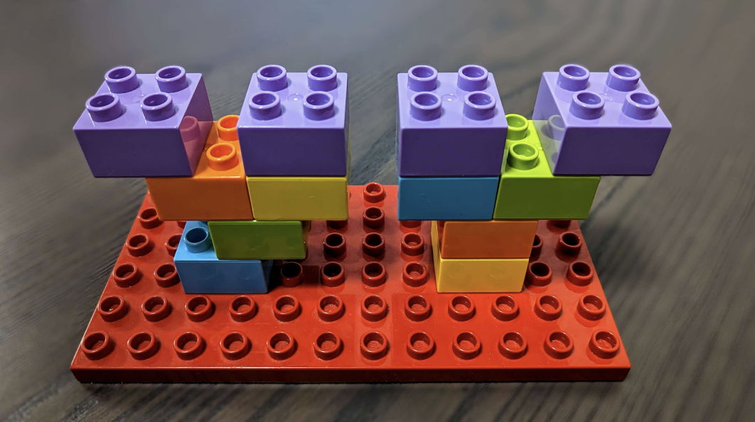 Vittorio is playing with his new LEGO Duplo bricks. All the bricks have the shape of a square cuboid with a $2 \times 2$ square base and a height of $1$. They can be arranged in the 3D space to build structures, provided that the following rules are met: