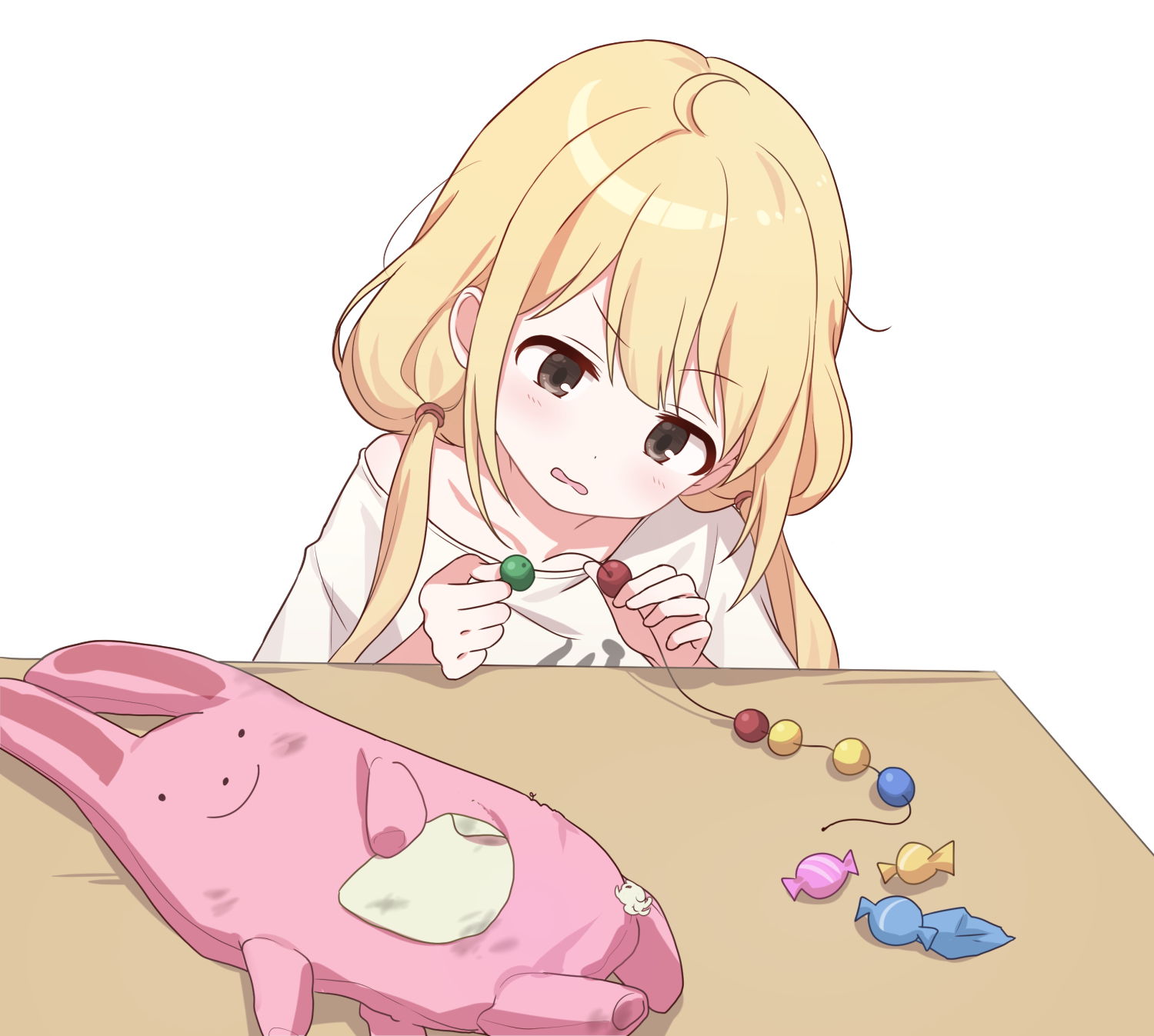안즈는 이러한 방식으로 만들어진 사탕 묶음들을 살펴보며 만족스러워했다. 그러던 중, 모든 사탕 묶음을 한 번씩 사용하여 원형의 사탕 팔찌를 만들면 더 귀엽겠다는 생각이 들었다.
