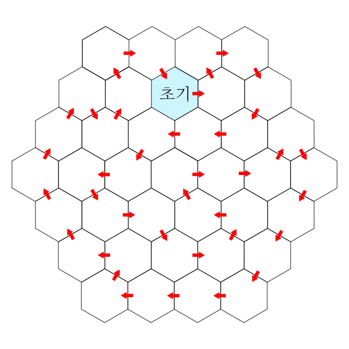 정후는 아래 그림과 같이 이동하며 모든 방을 정확히 한 번씩 돌아본다.