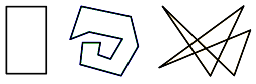 엄밀하게 말하자면, 이 장난감은 $(x_1, y_1)$, $(x_2, y_2)$, $\cdots$, $(x_n, y_n)$, $(x_1, y_1)$의 인접한 점들을 선분으로 이은 교차점이나 교차선이 있을 수 있는 다각형으로 정의된다.