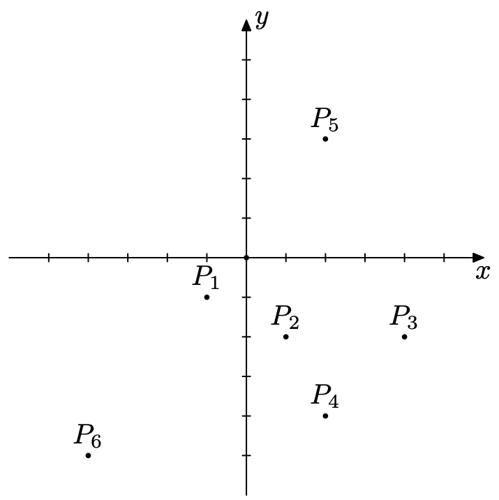 Рассмотрим $n$ точек на плоскости, пронумерованных от $1$ до $n$, обозначим их как $P_1, P_2, \dots , P_n$, координаты $i$-й точки $(x_i , y_i)$.