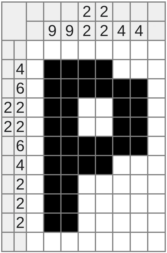 | (a) Загаданный японский кроссворд | (b) Решенный японский кроссворд |