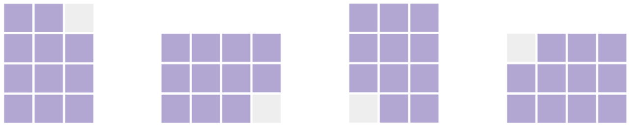 Pločice je moguće okretati ulijevo i udesno, pa svaka pločica ima najviše četiri različita položaja.