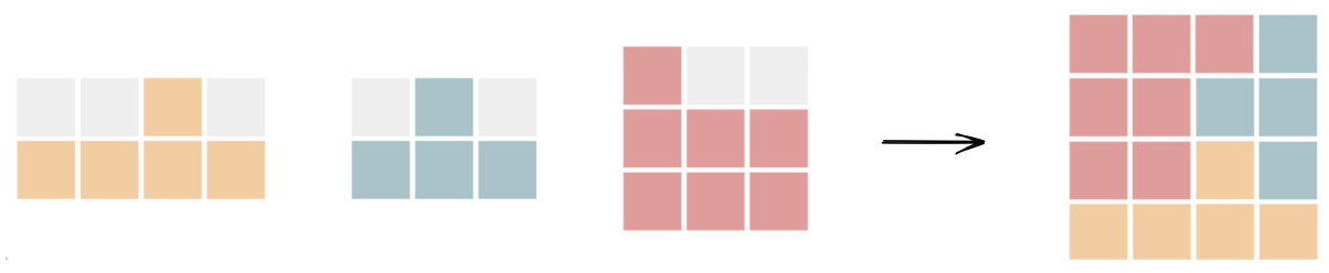Pojašnjenje trećeg probnog primjera: Zadane su pločice iz teksta zadatka. Nemoguće ih je složiti u pravokutnik bez praznina.