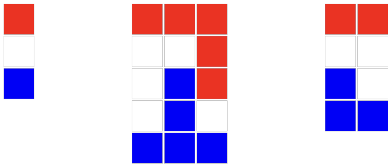 Fifi boja zastavu stupac po stupac: najprije oboji nekoliko polja u crvenu boju, zatim nekoliko u bijelu boju, a ostatak u plavu boju, točno tim redom gledano s vrha stupca prema dnu. Svaki stupac mora imati barem po jedno polje crvene, bijele i plave boje.
