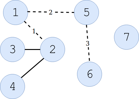 В первой строке входных данных даны два натуральных числа $n$ и $m$ --- число вершин и число ребер в графе ($2 \le n \le 10^4$, $1 \le m \le 10^4$).