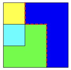 Майлз Моралес гуляет по Бруклину. С высоты птичьего полета, Бруклин выглядит как клетчатое поле $n \times m$, вертикальные стороны которого параллельны направлению север-юг. Каждая клетка этого поля принадлежит какому-либо дому. Дома образуют связные по стороне области клеток. Все единичные отрезки, находящиеся на границе поля или между двумя разными домами, являются дорогами. Майлз начинает свою прогулку на северной границе Бруклина. Майлз будет идти по дорогам на запад, восток или юг. При этом, он никогда не будет проходить по одной дороге дважды, даже в различных направлениях. Майлз будет гулять до тех пор, пока не дойдет до южной границы Бруклина. Маршрут Майлза разделит Бруклин на две части: ту, которая находится восточнее маршрута Майлза, и ту, которая находится западнее. Майлза интересует, какова минимальная возможная разница площадей этих частей. Помогите Майлзу ответить на этот вопрос.