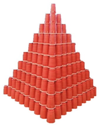 Мишка знает, что из стаканчиков можно строить красивые пирамиды, каждый стакан в которых, не считая основания, ставится на края четырех других. Таким образом, если в основании пирамиды находится прямоугольник, состоящий из $N \times M$ стаканов, то следующий уровень будет состоять из $(N-1) \times (M-1)$ стаканов, следующий из $(N-2) \times (M-2)$, и так далее$\dots$ Уровни продолжаются до тех пор, пока можно поставить стаканчик на края четырех других стаканчиков из предыдущего уровня.