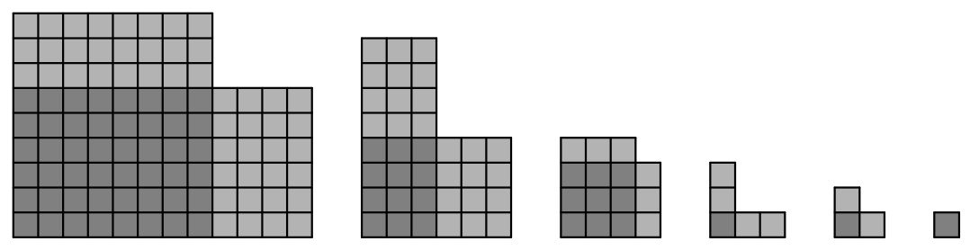Фокусник брал две карты размера $a\times b$ и $c \times d$ сантиметров. Далее он повторял следующее: располагал первую карту так, чтобы ее длинная сторона была горизонтальна, а вторую так, чтобы ее длинная сторона была вертикальна. Накладывал одну карту на другую так, чтобы один угол совпал. После этого та часть карт, которая была наложена, магическим образом исчезала. После этого он начинал с начала.