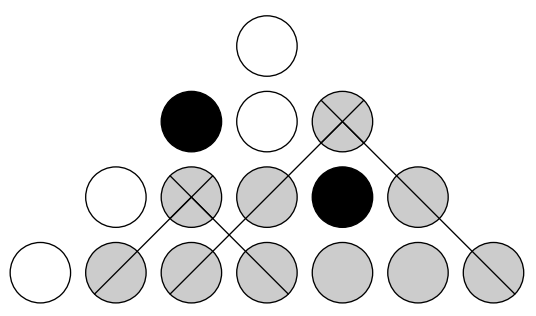Операторов можно разместить на трибунах стадиона. Трибуны состоят из $n$ рядов: в первом $2n-1$ место, во втором --- $2n-3$, $\ldots$, в $n$-м --- одно. Однако, не все подходят к матчу безответственно, и некоторые болельшики уже купили себе билеты на определённые места. Соответственно, операторов можно поставить только на свободные.