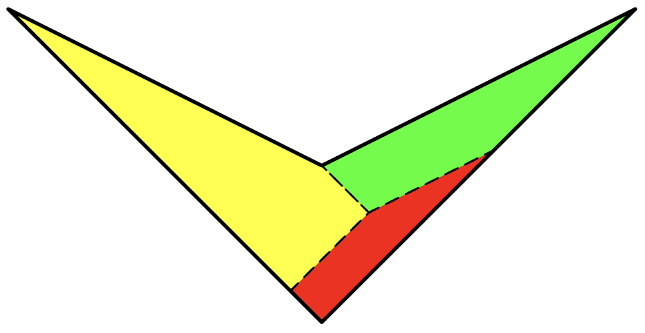 Помогите Люку разломить печенье таким образом, чтобы образовалось ровно три кусочка, каждый из которых имеет форму трапеции (выпуклого четырехугольника, две стороны которого параллельны).