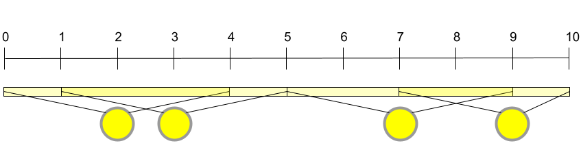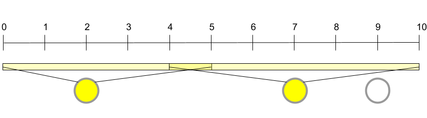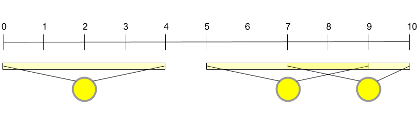In Sample Case #1, Onyaomale can illuminate the entire freeway by placing bulbs in the western-most and middle street lights only, leaving the eastern-most one unused. With these two lights covering $[0, 5]$ and $[4, 10]$, the entire freeway ($[0, 10]$) is illuminated.
