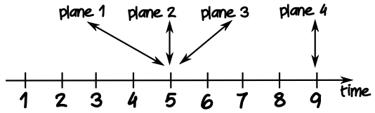 Now the planes 2 and 3 will arrive at the 5’th moment of time.