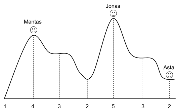 Antroje eilutėje yra N sveikųjų skaičių vi, nusakančių atitinkamų pusnių aukščius.