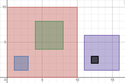 춘배는 여러 상자를 둘러보던 중 몇 개의 상자는 다른 상자를 완전히 포함하고 있어 큰 상자를 구매하면 큰 상자가 포함하는 다른 상자들도 같이 구매할 수 있다는 사실을 깨달았다!