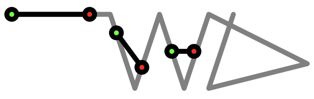Figure G.1: An illustration of the path taken in the 2nd sample case, taken from above. This could also be a particularly festive diagram of someone falling into a crevasse.
