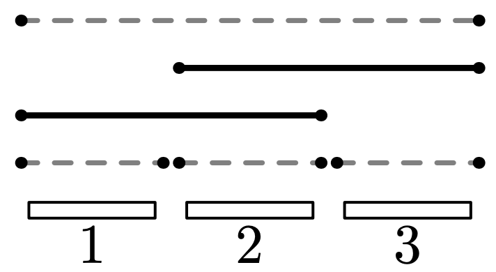 In the example, initially, only two barriers, $(1, 2)$ and $(2, 3)$, are active. These two barriers cover all three cells, so $k$ is equal to 0 in the first round.