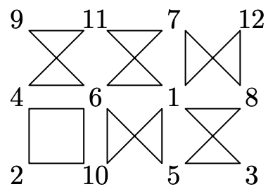 Print an $n\times m$ matrix filled with distinct integers from $1$ to $nm$, inclusive, that produces the shapes of the loops in the input.