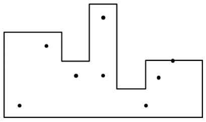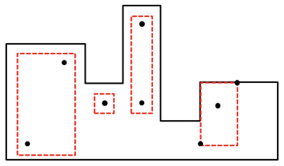 In Figure C.1, the dots on the boundary or in the interior of the farm field represent the locations where the pests have infested. To effectively eradicate the infestation, a farmer tries to divide the infested area into several rectangular areas that satisfy the following conditions