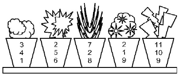 위의 그림에서 2번 화분을 깬다면, 3번과 4번 화분은 숫자 2가 겹치기 때문에 화분이 깨지며, 숫자 9가 겹치기 때문에 화분 5가 깨지게 된다. 이제 남은 화분은 1번이기 때문에, 1번만 깨면 모든 화분을 깰 수 있다. 태완이는 화분 두 개를 직접 깨서 모든 화분을 깰 수 있다.
