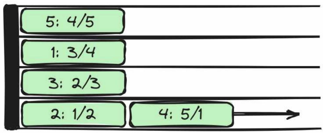 The train ($2$ : $1$/$2$) cannot leave the platform before the train ($4$ : $5$/$1$).