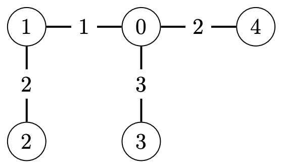 IOI 나라의 어떤 도시에서 출발하더라도 다른 도시로 직통 열차를 타고 바로 이동할 수 있다. 즉, $0 ≤ u, v ≤ N - 1$, $u \ne v$인 모든 $N(N - 1)$개의 순서쌍 $(u, v)$에 대해, $u$번 도시에서 출발하여 $v$번 도시에 도착하는 직통 열차가 있다. $u$번 도시에서 이 직통 열차를 타면 $v$번 도시에 도착할 때까지 내릴 수 없으며, 이 직통 열차의 소요 시간은 IOI 나라의 철도망에서 $u$번 도시에서 시작하여 $v$번 도시에서 끝나는 유일한 단순 경로 상의 철도들의 길이를 합한 것과 같다.