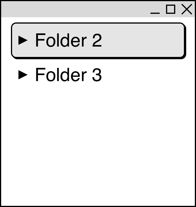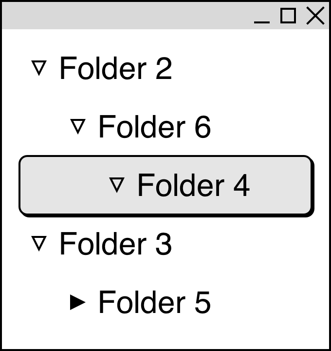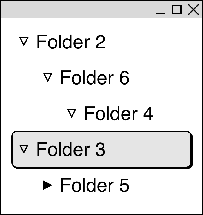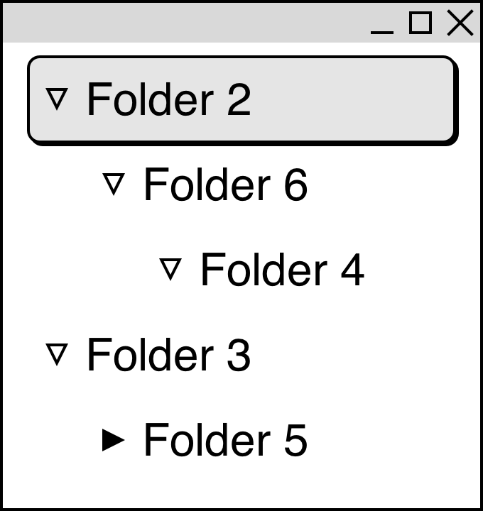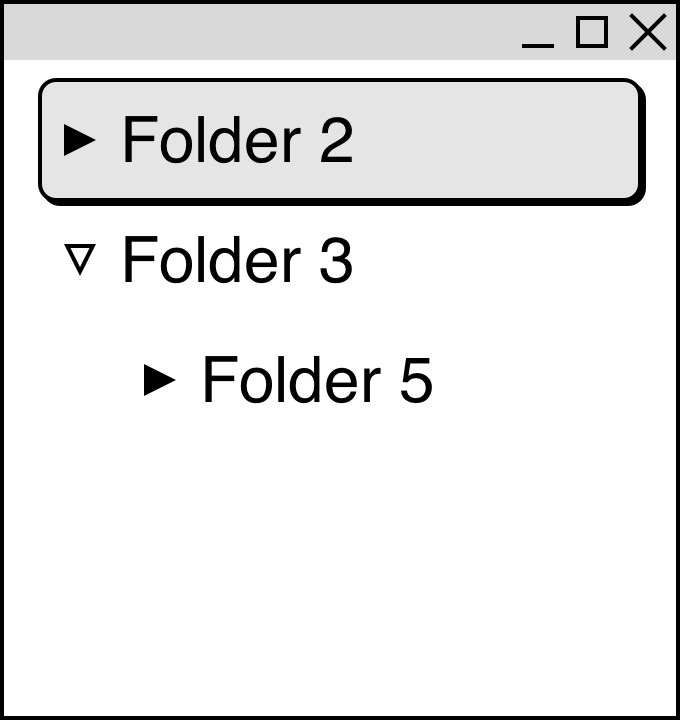(그림 1) 폴더를 펼치고 접는 예제. ▽은 펼쳐진 폴더를, ▶은 접힌 폴더를 나타냅니다.