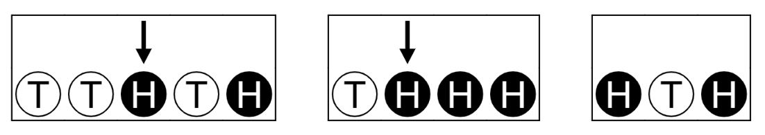 각 테스트 케이스에 대해, 초콜릿의 상태를 나타내는 길이 $N$의 문자열이 공백 없이 한 줄에 주어진다. $(1\le N\le 100\, 000)$ 이 문자열은 H, T, ?의 $3$가지 문자로만 이루어져 있으며, H는 앞면, T는 뒷면, ?는 원하는 대로 뒤집을 수 있는 초콜릿을 뜻한다.