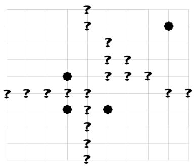 For example, if Ant Town has 10 horizontal and 10 vertical streets, and if there are 4 intersections with umbrellas, then the question marks in the figure represent "wet intersections":