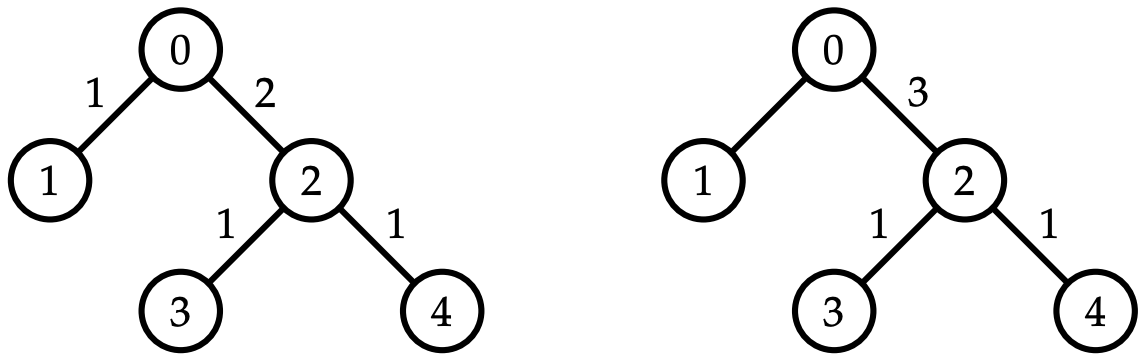 For the tree in the sample input, depicted below, an optimal item placement by YAOGS guarantees that the winner cannot collect more than four items.