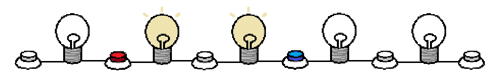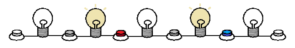 친한 친구 민형이와 선율이가 재미있는 게임을 한다. 게임은 아래와 같이 $N$개의 버튼과 $N-1$개의 전구가 있는 게임판에서 이루어진다. 여기서 $N$은 항상 짝수이다.