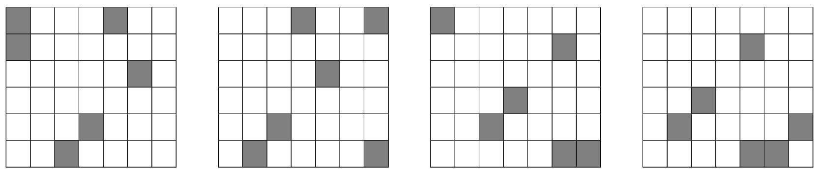Figure D.2: All four $6 \times 7$ subgrids of the uniform bánh bò hấp assembly illustrated in Figure D.1.