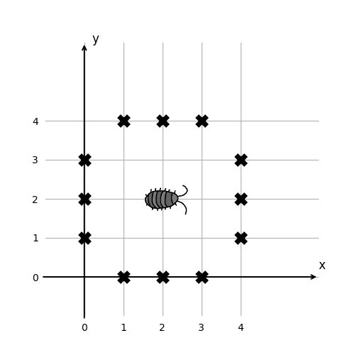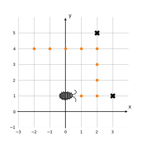 Note that the x- and y-coordinates of the position of the bug can be negative.