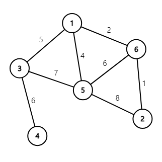 다음과 같은 과정을 통해 만들어진 무방향 가중치 연결그래프 $G=(V, E)$가 주어진다.